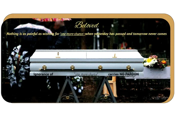 If each of us were to know the exact day on which we would die, we would likely all spend it with the ones we loved. We would tell them everything we had ever wished to tell them, share with them all of the joy and love that they deserve, and the problems we have with avoiding death would be gone.